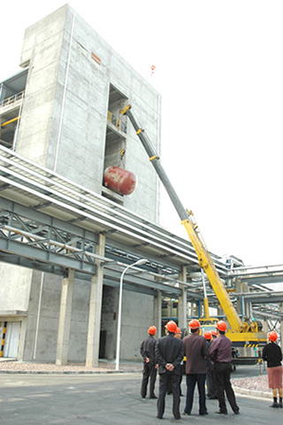 江山股份草甘膦工地正在吊裝反應(yīng)釜