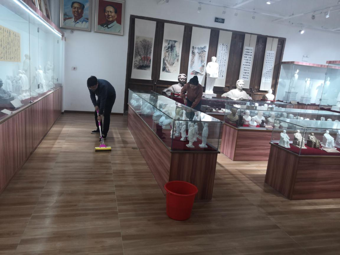 黨員們首先來到毛主席塑像收藏紀念館參觀學習。紀念館展示了上世紀五十年代初至七十年代末全國各地制作的毛主席塑像及瓷板畫、瓷擺件等各類藝術品,這些塑像品種繁多、質地精美,惟妙惟肖地刻畫出偉人的精氣神。通過工作人員的介紹,黨員們了解了不同時期、不同造型毛主席塑像的故事和意義,也通過這些塑像更加深入地學習了黨史和新中國史。 塑像紀念館面積600平方米,藏品達6500件,由館主沈愛國老夫妻倆管理。他們每天都要接待前來參觀學習的黨員群眾,近期不少單位在此開展主題活動,他們倆就更忙了,每天僅打掃衛(wèi)生就很不容易。國盛環(huán)境黨支部了解這一情況后,主動組織黨員帶著拖把、水桶、抹布等到塑像館開展志愿服務。黨員們有的打水,有的拖地,有的擦拭玻璃展柜,大家行動迅速、認真細致、井然有序。國盛環(huán)境黨支部也與沈愛國老人約定,今后館里有什么困難,可以隨時聯系國盛環(huán)境黨支部幫助解決。