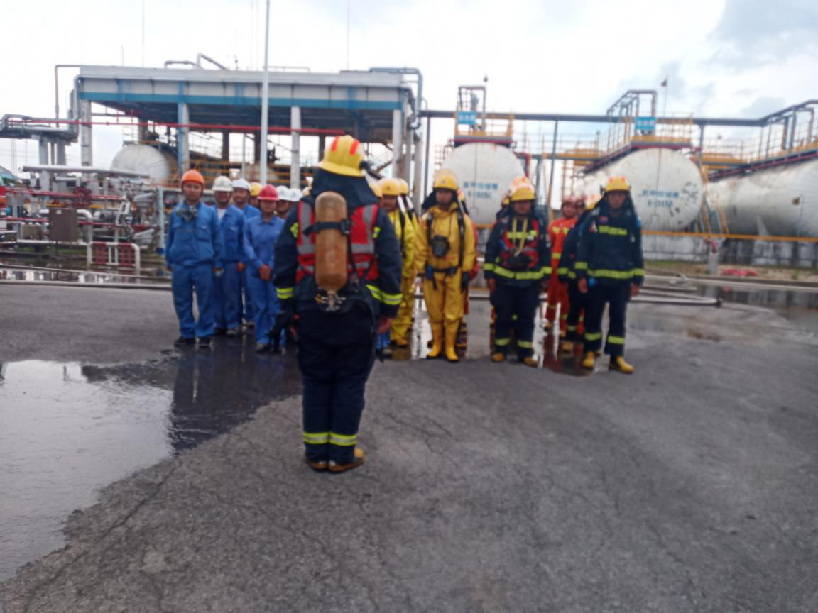 公司安全部聯(lián)合開發(fā)區(qū)消防中隊,組織氯甲烷泄漏演練,提高了員工的應(yīng)急處置能力。