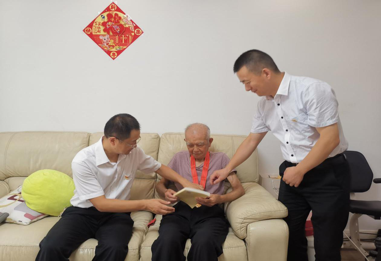 6月29日上午,國融公司黨委書記劉海兵、黨委副書記王冠榮帶領(lǐng)公司支部書記和黨員代表,慰問在黨50年以上的老黨員,向他們致以誠摯的問候,送上“光榮在黨50年”紀(jì)念章。