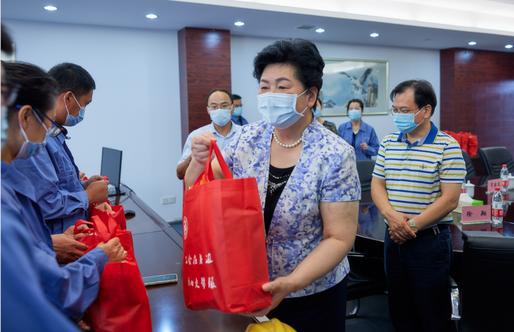 炎炎夏日,酷暑難耐。為進(jìn)一步加強(qiáng)企業(yè)基層員工疫情防控意識(shí),更好地保障一線職工群眾在高溫下正常生活,8月10日下午,市人大常委會(huì)副主任、總工會(huì)主席葛玉琴,市總工會(huì)黨組書記、副主席葛志娟到江天公司指導(dǎo)疫情防控工作,并看望慰問一線工作者。市國(guó)資委黨委副書記、副主任宋建宏,產(chǎn)控集團(tuán)黨委副書記、副董事長(zhǎng)、總經(jīng)理顧建國(guó),黨委副書記、工會(huì)主席成剛等領(lǐng)導(dǎo)陪同。