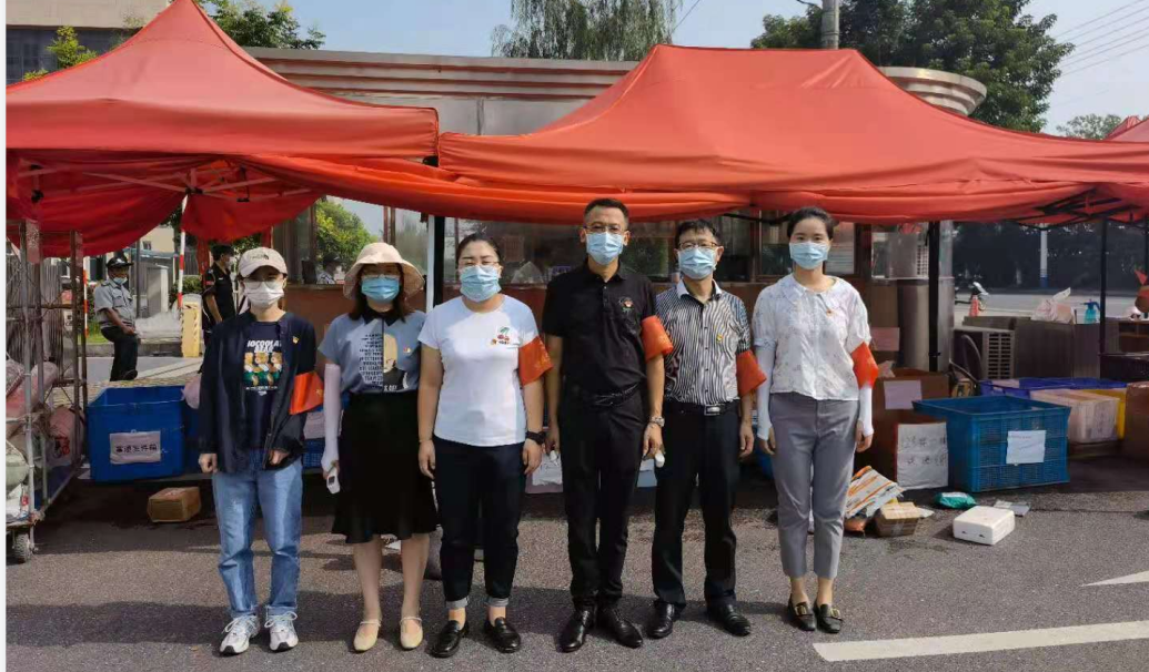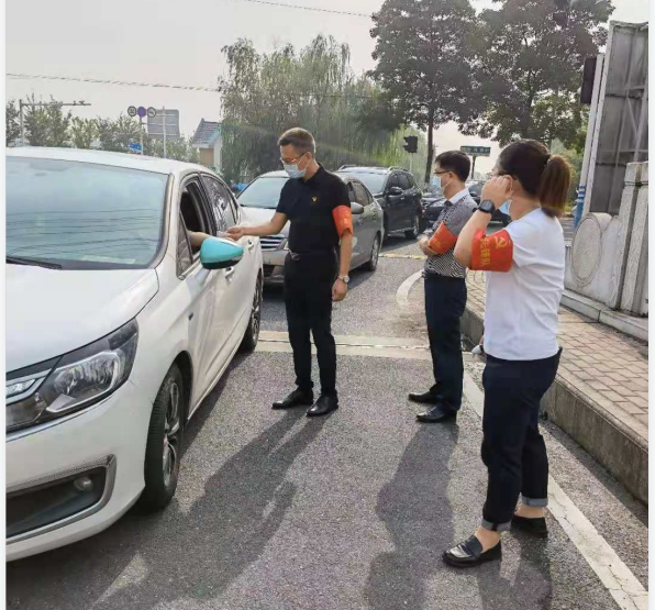 園區(qū)防疫是阻斷疫情傳播最基礎(chǔ)、最關(guān)鍵的環(huán)節(jié)。由于入駐企業(yè)較多,當前智匯產(chǎn)業(yè)園門崗排查任務(wù)重,特別是早高峰時段,車輛人員集中,導致通行不暢。為積極投身園區(qū)疫情防控工作,國盛黨支部主動聯(lián)系園區(qū),組織黨員先鋒隊和青年突擊隊分別于8月26日和27日連續(xù)兩天開展防疫志愿活動。早上八點,黨員和青年志愿者們佩戴紅袖章,為進入園區(qū)的人員測量體溫并檢查行程信息、講解防疫知識,讓群眾從思想上重視、行動上配合,牢記勤洗手、戴口罩、常消毒的防疫要點。