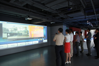 參訪團(tuán)在感知中國(guó)博覽園體驗(yàn)物聯(lián)網(wǎng)實(shí)際應(yīng)用