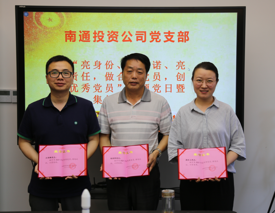 2022年7月1日是中國共產(chǎn)黨誕生101周年生日,下午南通投管全體黨員召開支部黨員大會(huì),開展“亮身份、亮承諾、亮責(zé)任,做合格黨員,創(chuàng)優(yōu)秀黨員”主題黨日暨集體政治生日,支部為每位黨員精心準(zhǔn)備了一份政治生日賀卡,賀卡上寫明本次活動(dòng)主題,并分別為每個(gè)黨員填寫了黨齡;會(huì)上支部表彰了3名2021年度優(yōu)秀黨員;履行接受中共預(yù)備黨員的發(fā)展與表決程序,一致同意吸收2名同志成為中共預(yù)備黨員,黨員們結(jié)合黨員責(zé)任區(qū)及辦實(shí)事等內(nèi)容,在五彩剪紙上撰寫服務(wù)承諾用語,貼在公司員工寄語墻上。